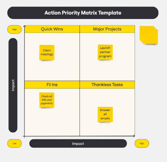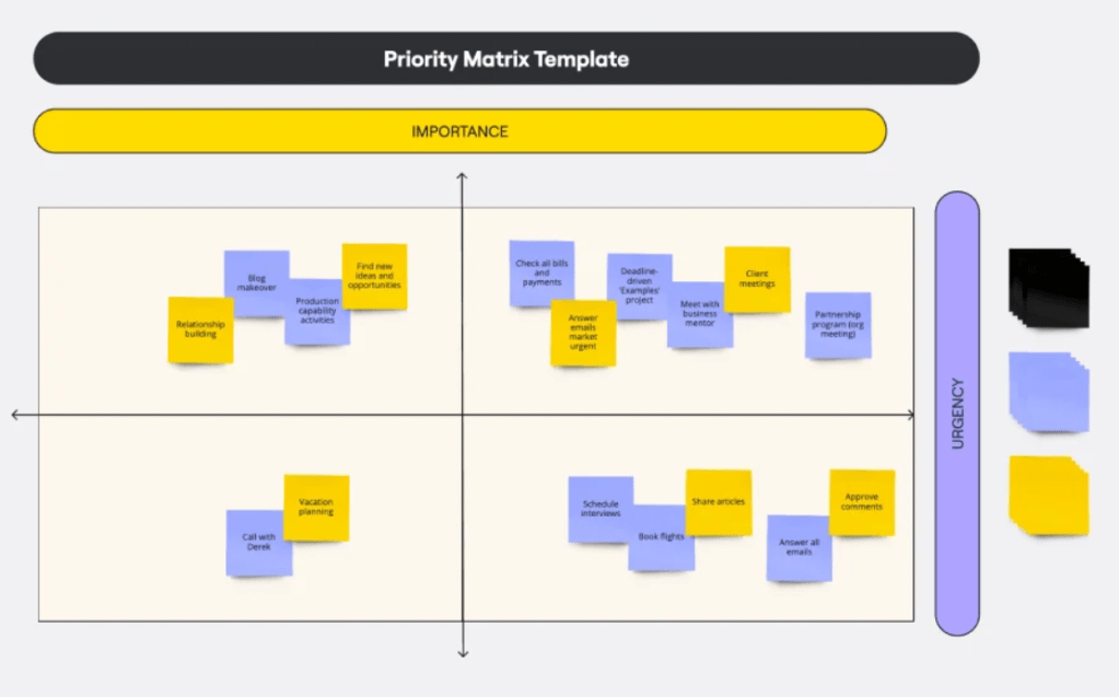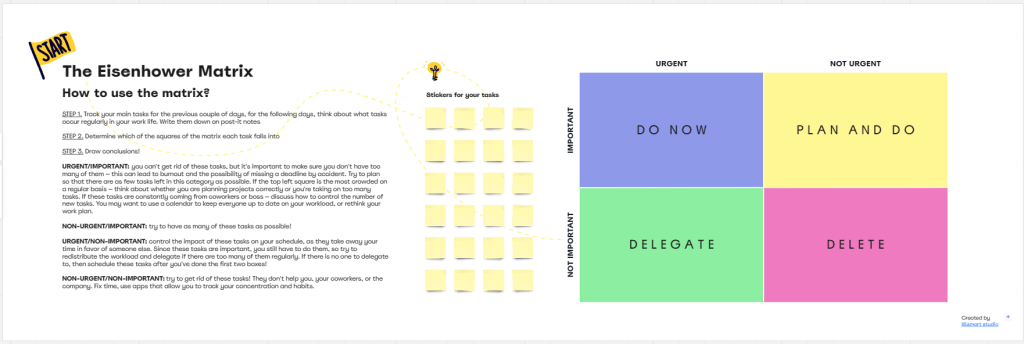 The above is a Miro Board template setup and ready for a team collaboration session using the Eisenhower Matrix I talked about in the previous post – a technique that is typically being used across the business for different types of priority setting.